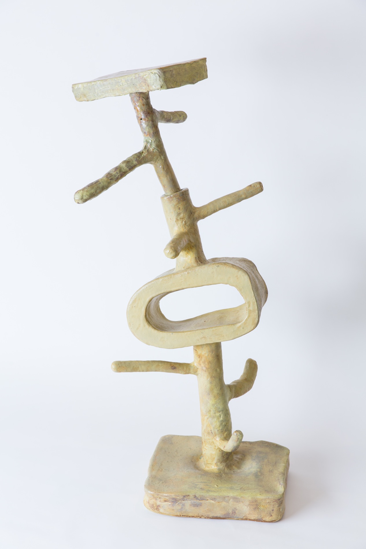 Woody De Othello crafts inflated, hyperreal ceramic sculptures based on the everyday items we often pay little heed — a cat scratcher, a coffee jug, a neti pot.De Othello examines how the negative aspects of our economic, political, and social environments seep into our personal spaces. These mangled households objects become anthropomorphized in their references to the emotionally strained human body. The wear and tear from stress is moulded into the ceramic forms, responding to a twisted aura that has oozed into our so-called ‘safe’ spaces of home and mind.