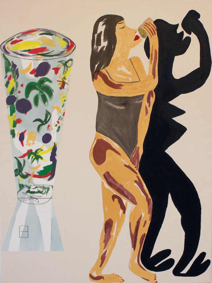 In his first solo exhibition at Johansson Projects, Micah Wood explores the semiotics of coherent symbols through painting and sculpture by presenting a critical commentary on western society’s strange relationship to food marketing and to food itself. “Healthy Tears” uses the physicality and spatial weight of sculpture techniques as well as the expressive and organic substance within painting to create a work that questions perception and truth in relation to consumer culture. Wood attempts to unpack an apparent hypersensitivity around food labeling and product awareness, while also questioning how consumer products are gendered, and the trope of certain foods as they become analogies for the body. In a Saussurean exploration of signs, warm flashes of color and organic elements alongside textural minimalism work to deconstruct our familiar symbols to their bare minimums. In their figurative simplicity, Wood’s paintings are intimate and inviting, and in turn call on the viewer to reevaluate their emotional relationships to food and consumer culture. Wood wrestles with his realization that almost all foods in Western society carry some form of guilt behind where it comes from. Name a fruit, vegetable, or meat and someone can tell you five reasons why you are hurting yourself, the environment, or supporting a drug cartel. Wood aims to champion the messy amongst the pristine, to highlight the carnage, rage and violence that underlies our desperate attempts at portraying our lives as ‘normal’ and ‘perfect’. He references Thomas Pynchon in “Vineland”, who speaks on vegetarian pacifists and other exaggerated forms of diets. Wood finds this carnage and hypersensitivity in the everyday, in a pint of blueberries spilled on a pristine white aisle that accidentally creates a actionist, gestural painting, in a contact solution advertising the supposed simulation of “healthy tears”, in a health food store sign mistakenly read as “BIO CARNAL”. In his exhibition, Wood presents his response to the ideally perfect California lifestyle, an examination of “unhealthy tears” and of “organic sex”, challenging us to question how we are molded by accepted ways of perception within western society and consumer culture by presenting his own new visual language.